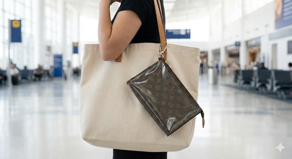 The Louis Vuitton cosmetic pouch has a smart cylindrical shape. When full, it stands upright on its own for a sleek look. Some models also offer a detachable clear pouch. This is perfect for wet or leaky items. Additionally, a leather loop lets you hang it easily in bathrooms, suitcases, or other bags.