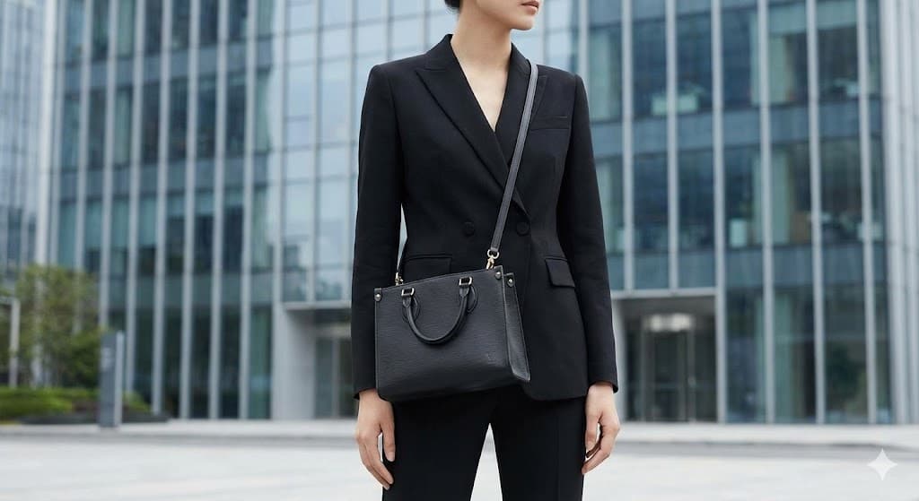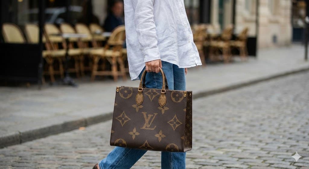 The Louis Vuitton Onthego embodies a strong structure and clean outline. To achieve a balanced look, pair it with sharp, tailored clothing, as this helps avoid a bulky appearance.