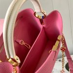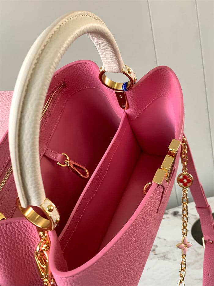 The inside color of LV Capucines MM handbag comes in different color options, and the model number vary depending on the lining color. For example, the pink lining is M20708.