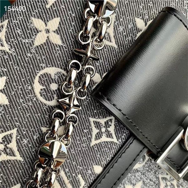 This LV Dauphine bag is crafted from monogram denim cavans with calkskin-leather trim, showcasing exceptional quality and durability. Measuring 25 x 17 x 10.5 cm, it offers ample space for your everyday essentials.