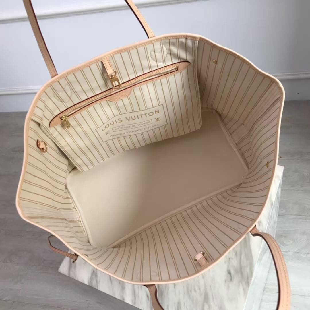 The inside color of LV neverfull GM Damier Azur Canvas comes in different color options, and the model number vary depending on the lining color. For example, the Beige lining is N40602.